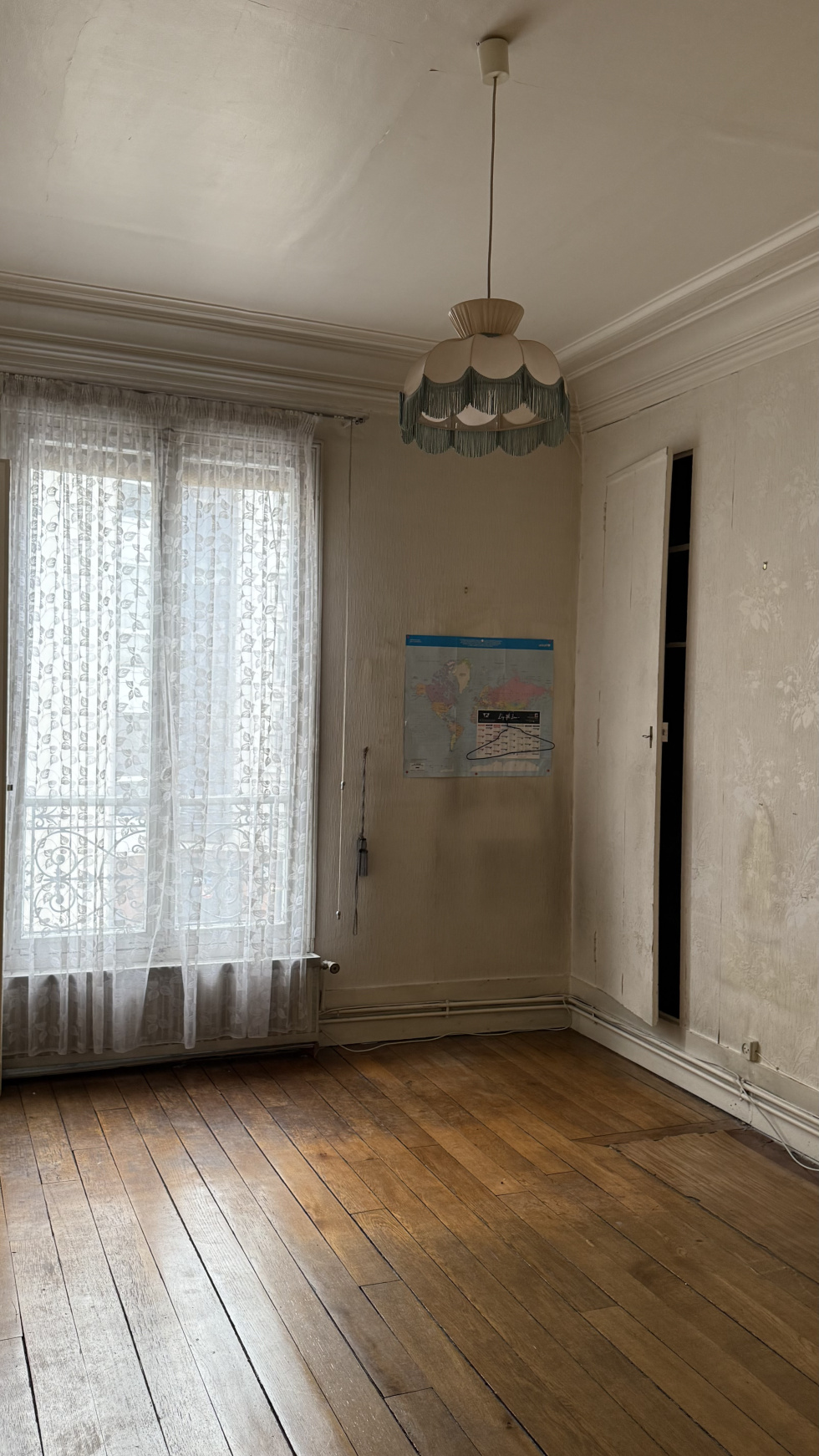 Dans petit immeuble de 3 étage, rue de Bagnolet au niveau de la rue de la réunion, appartement Lumineux à rénover de 55,63m2, avec cave sous sol. Il est traversant rue et cour, exposé SUD-ESt/Nord-OUEST. Le Parquet chêne ancien peut être conservé. ENtrée avec WC, plan en étoile desservant 3 pièces et cuisine et salle de bains. A SAISIR! Idéal investisseur ou 1ère acquisition.